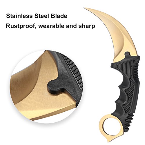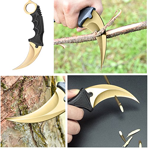 RUNACC 高品質シースナイフ 狩猟用ナイフ サバイバルナイフ 戦術ナイフ CSナイフ (金)
