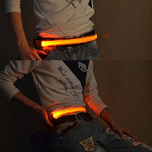 RUNACC LED反射ベルト 調節可能 ランニングベルト 軽量 スポーツウエストベルト リリースバックル付き 3つの照明モード 夜間走行/サイクリング/ハイキング/ウォーキングに最適 オレンジ