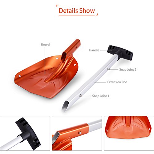 - 着脱が便利なシャベルは、収納や持ち運びに便利な2つのパーツに簡単に分解でき、車に入れたり、バックパックに入れたりすることができます。