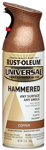 Equipped with a comfort trigger, which eliminates finger fatigue. 12 oz. Hammered Copper Universal Coverage Spray Paint. Designed for superior performance. Can be used on all major surfaces including: wood, metal, plastic, concrete, brick and more. Provides an even topcoat in minutes. Spray any way. Equipped with a comfort trigger, which eliminates finger fatigue. Provides twice the rust protection.
