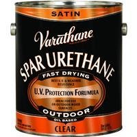 Oil-based formula made with premium quality. UV and weather resistant. To be applied to outdoor wood projects. Both self-leveling and fast drying formula. Varathane, Gallon, Satin, Exterior, Oil Based, Premium Spar Urethane, UV & Weather Resistant, VOC Compliant, South Coast & Select CARB CA Counties Use TV #776-094.