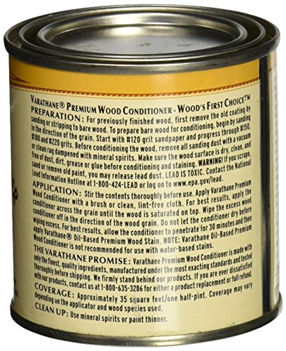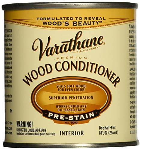 Works under any oil based stain. Varathane 1/2 Pint Wood Conditioner. This is a premium wood conditioner used prior to staining on soft and porous woods such as pine, maple, alder, fir and birch. Prevents splotching and uneven color. Penetrates deep for greater stain control. Works under any oil based stain.