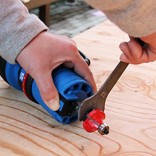 長尺ものの面取り、みぞきりの直線加工、円きり加工に便利なストレートガイド付。
