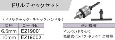 RYOBI リョービ ドリルチャックセット EZ19002 口径:10mm
