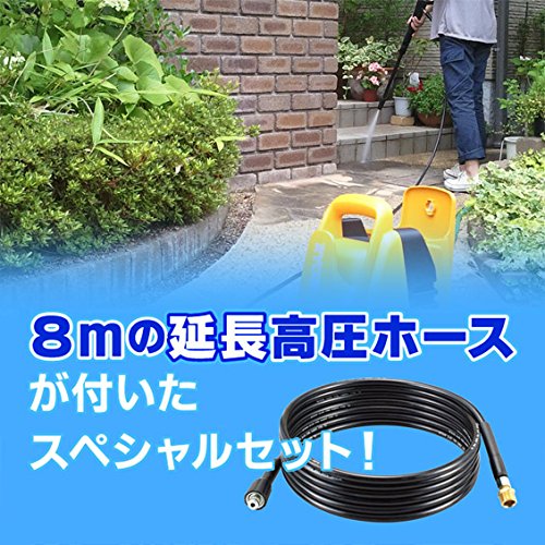 ガン、高圧ホース6m、延長高圧ホース8m、バリアブルノズルランス、ターボノズルランス、吸水コネクタ、ワンタッチジョイント、ノズルクリーナピン、吸水ホース3m、ホースバンド、取扱説明書、保証書(保証期間1年)