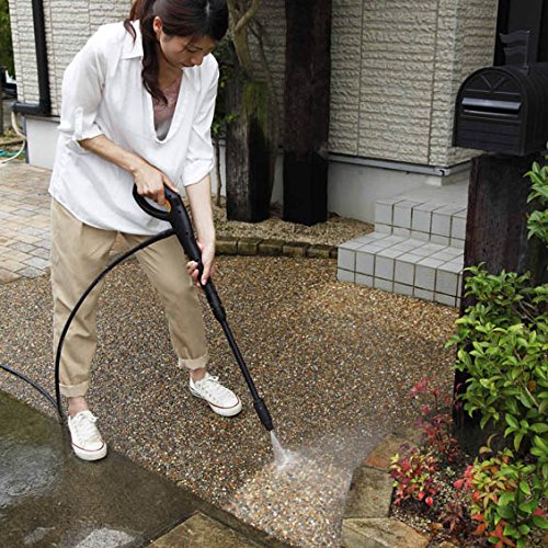 高圧洗浄機は、水道水から吸水した水に圧力をかけ、高水圧で噴射し、こびりついた頑固な汚れを洗浄します。
