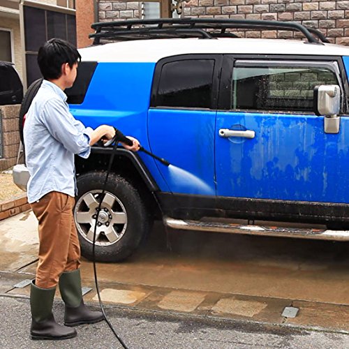 高圧洗浄機は、水道水から吸水した水に圧力をかけ、高水圧で噴射し、こびりついた頑固な汚れを洗浄します。