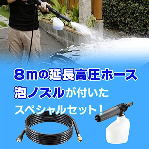 ガン、高圧ホース6m、延長高圧ホース8m、バリアブルノズルランス、ターボノズルランス、泡ノズル、吸水コネクタ、ワンタッチジョイント、ノズルクリーナピン、吸水ホース3m、ホースバンド、取扱説明書、保証書(保証期間1年)