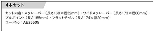 RYOBI リョービ エアケレン用 AE25505 4本セット スクレーパー/ワイドスクレーパー/ブルポイント/フラットチゼル