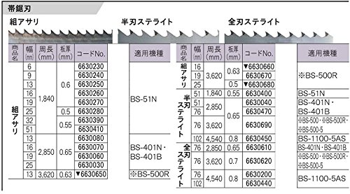 RYOBI リョービ バンドソー用 6630400 帯鋸刃 半刃ステライト 幅:51mm
