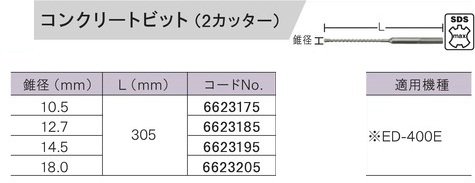 RYOBI リョービ コンクリートビット 2カッター 6623185 錐径:12.7mm