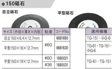 RYOBI リョービ 両頭グラインダ用 Φ150砥石 平型砥石 1680031 外径×厚さ×内径:150×19×12.7mm