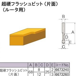 RYOBI リョービ トリマ・ルータ用 6673240 超硬フラッシュビット 片面 ルータ用