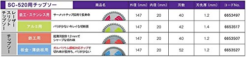 RYOBI リョービ SC-520用 6653497 レーザースリットチップソー 鉄工・ステンレス用 外径×内径:147×20mm