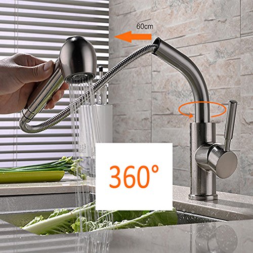 RaiFu 水栓 キッチン 304ステンレス 回転伸縮可能 ホースが伸びる 冷温切り替え 混合水栓 タップ 蛇口 耐久 台所 2
