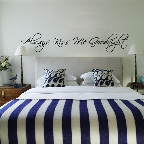 RaiFu ウォールステッカー いつもキスミーグッドナイト - 言葉と壁紙ステッカービニールウォールステッカーカップルのための壁の引用符ベッドルーム(ダークブラウン、ラージ)