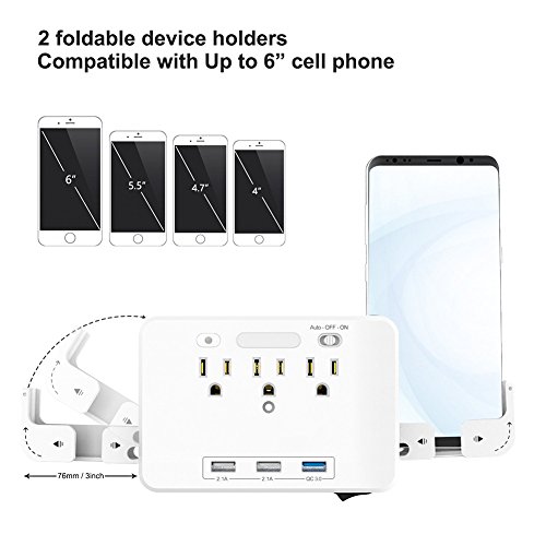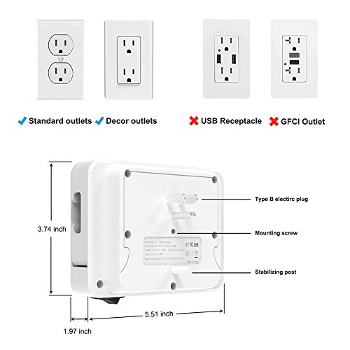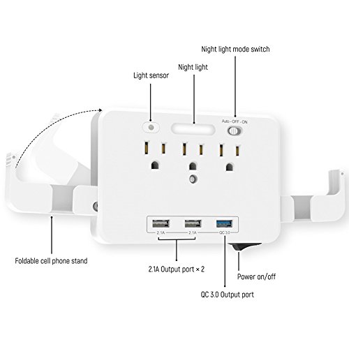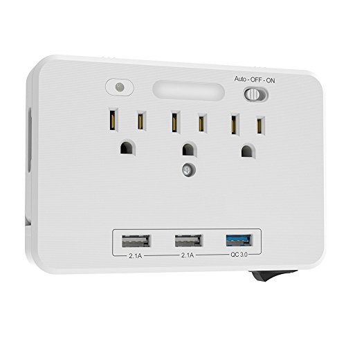 RaiFu スマートソケット コンセント 急速充電器 デュアルUSB 3アウトレット LED ナイトライト センサー ウォールタップ ホーム スクール オフィス用 充電ポート