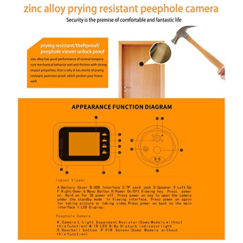 RaiFu ドアホン スマート デジタル ビデオ ドア ビューア 赤外線 ナイトビジョン モーション 検知 キャットアイ セキュリティ カメラ ドアベル 金色