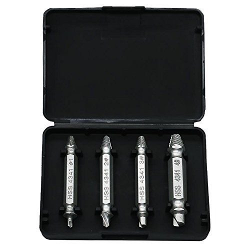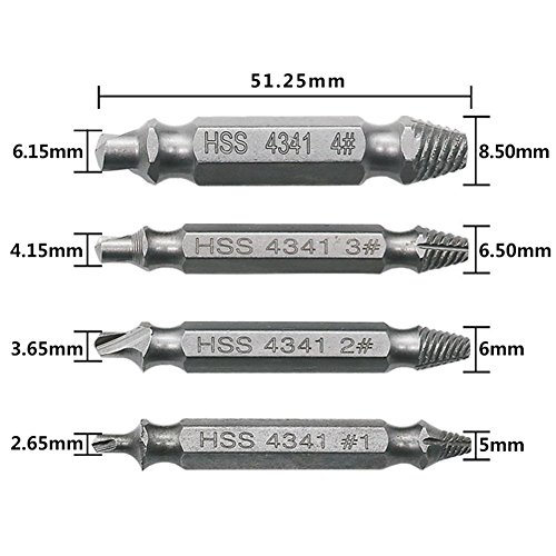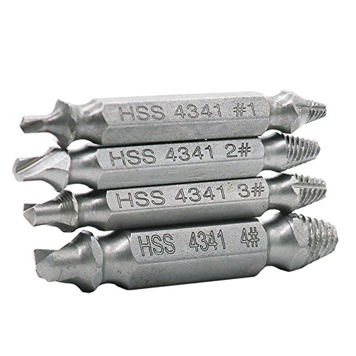 RaiFu スクリューリムーバーセット 4PCS/セット HSS4341 ダブルヘッド ルーズ スクリュー エクストラクタ スクリューエクストラクタ ドリルビットツール 折れた ボルト抜き スピード アウト 修理用工具 六角シャンク 壊れたボルトリムーバー 木工機械 メンテナンスツール