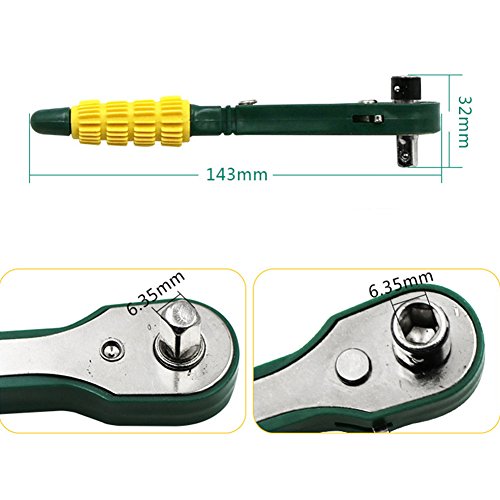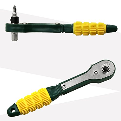RaiFu ラチェット レンチ 1/4 スクリュービット スクリュードライバ ロッド シンプル ソケット スパナ 修理ツール イエロー-グリーン