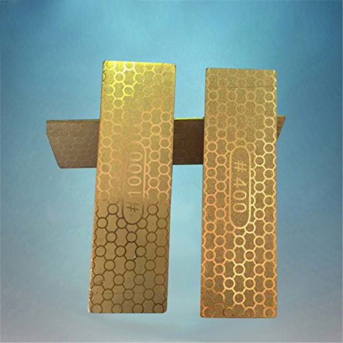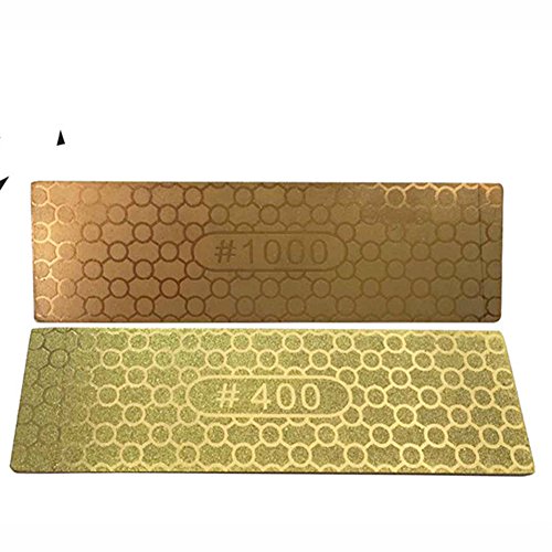 RaiFu キッチンゴールドカラーメッシュハニカムナイフ削りコランダム砥石 軽量プレート砥石 400/1000目