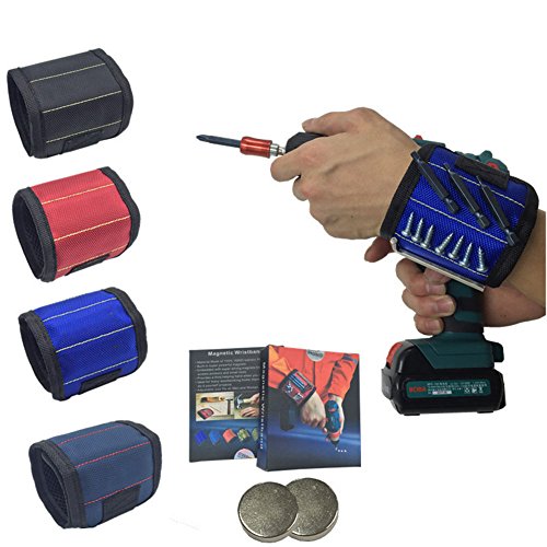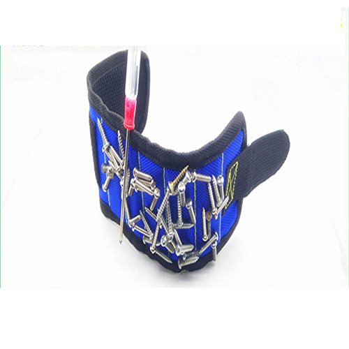 RaiFu 磁気バンド 強力磁石内蔵 ネジ・釘・ビットを磁石で吸着 金属部品 紛失防止 磁気 リストバンド 作業効率アップ アームマグネットバンド 左右兼用 便利グッズ フリーサイズ 工具 作業着 3Pブルー