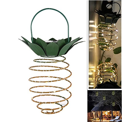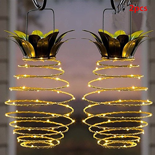 RaiFu ソーラーライト 2点セット パイナップル ライト 防水 伸縮式 銅線ワイヤーライト 玄関前/道/芝生/庭/公園/防犯照明用 雰囲気作り 屋外用