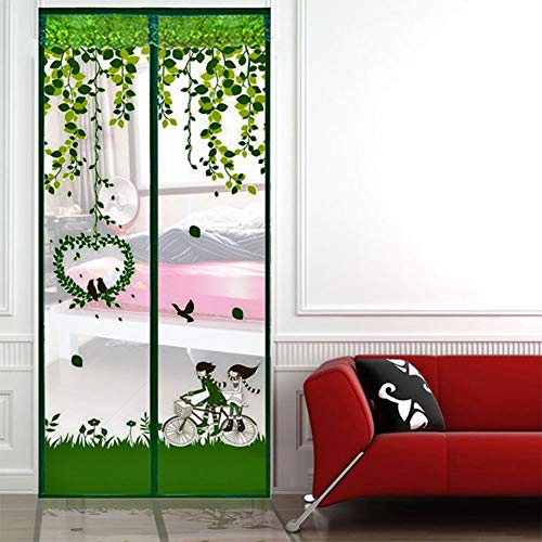 RaiFu ドアカーテン 自転車 磁気 防蚊 ドア デバイダ シアー カーテン バランシング デコレーション おしゃれ (プッシュピン付) グリーン 90X210CM
