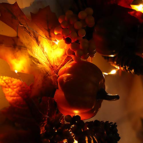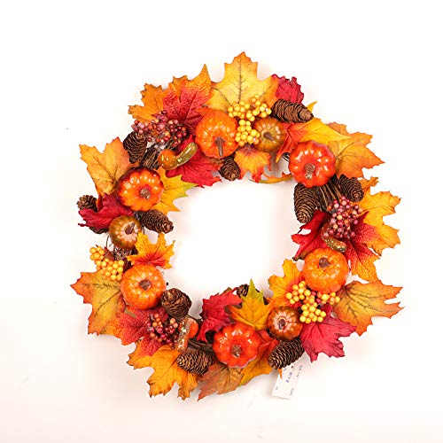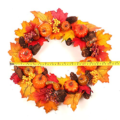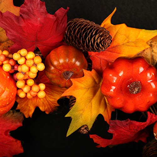 花輪 秋 紅葉 45CM ガーランド シュガー パンプキン パインコーン メープルリーフ ガーランド ドア掛け 玄関飾り インテリア ウェディング 祝日 装飾 吊る おしゃれ