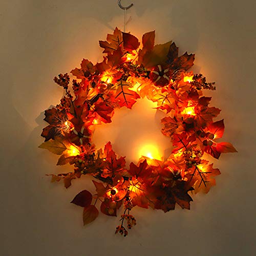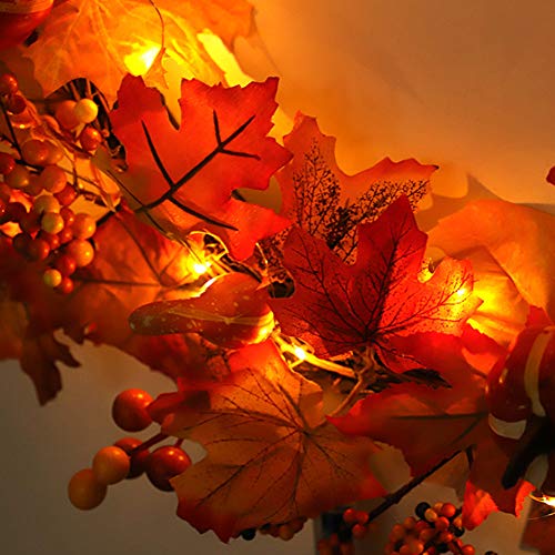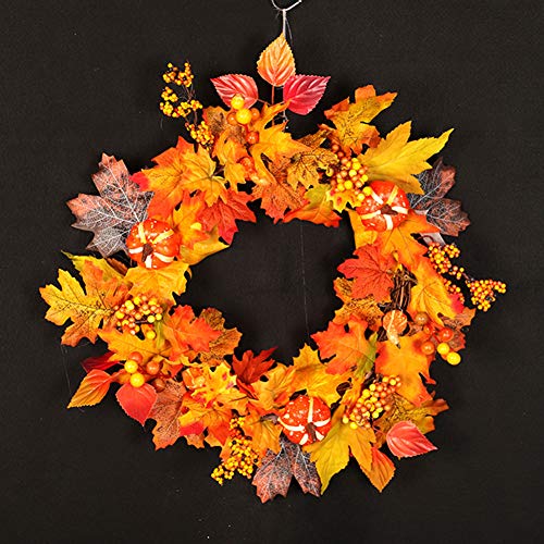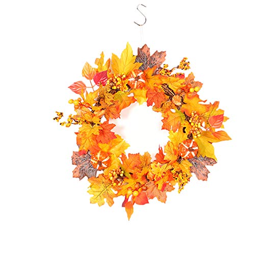 RaiFu 花輪 秋 紅葉 イエロー クリエイティブ デコレーション ホーム ホテル オーナメント クリスマス リース 玄関飾り インテリア お店飾り レストラン ライト付き