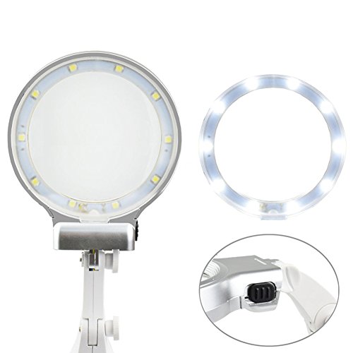 RaiFu 拡大 レンズ レンタル デスク トップ 虫 めがね デスク トップ LED ライト彫刻 修理 ツール 3 X 4.5X ホワイト(530グラム)