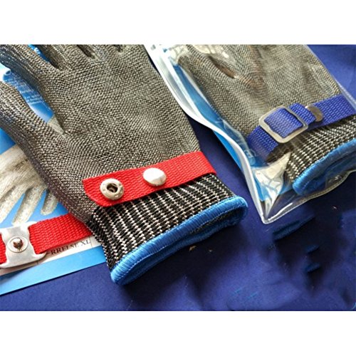 RaiFu 作業用手袋 防刃手袋 切れない手袋 ステンレス スチール ワイヤー ウィービング アンチ カット 耐摩耗 ワイヤー グローブ メタル バックル 付き グレー XL-増加