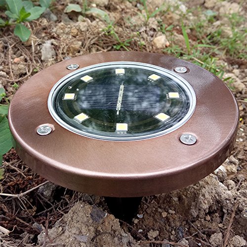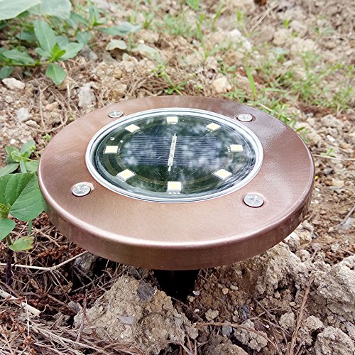 RaiFu ソーラーライト 8 LED ガーデンライト 自動点灯消灯 埋め込み式 防水 ガーデン 庭 玄関 芝生 駐車場 屋外照明 地中埋込型ライト ホワイト 1pcs