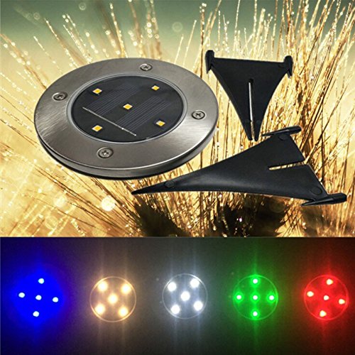 RaiFu 地中埋込型ライト ソーラーライト 5 LED ソーラーパワー 屋外 路の庭のデッキ 地中埋設光 レッド