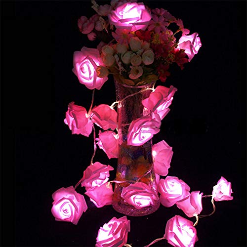RaiFu ストリングスライト ロマンチック シミレートローズ形状 文字列ライト ホーム パーティー 祝祭 装飾 クリスマスの装飾 クリスマス ギフト 5M 50LED ピンク