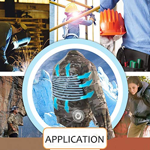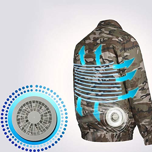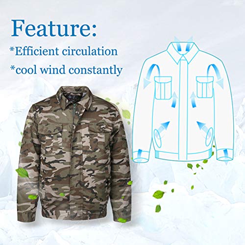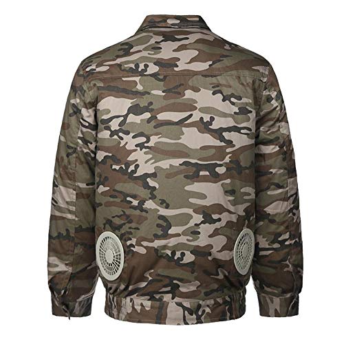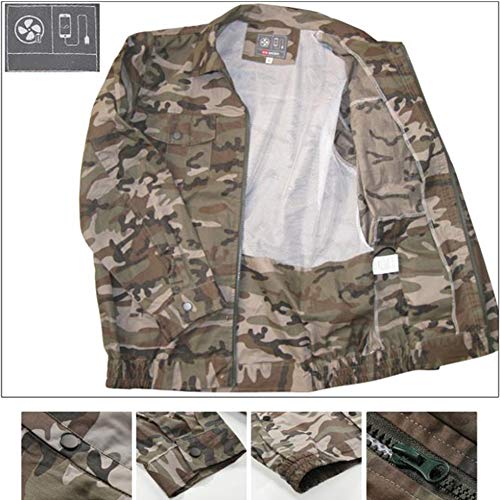 RaiFu 空調服 空調風神服 作業服 空調衣類 冷却ファンの作業 夏 ワークウェア 現場工事 長袖ブルゾン 綿 熱中症対策 日焼け止め服 スポーツジャケット 空調服+ファン+リチウムイオンバッテリー セット 迷彩 XXL