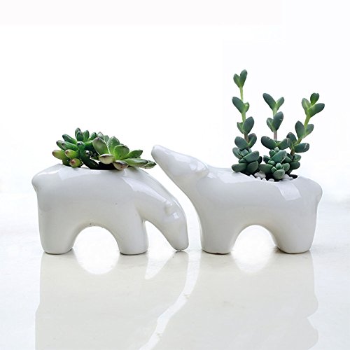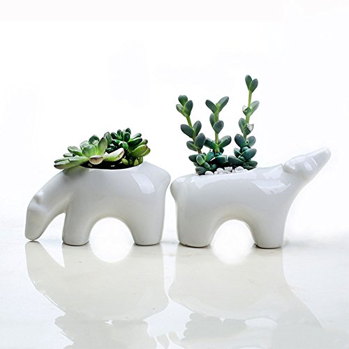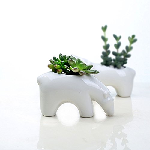 RaiFu 植木鉢 陶器 小型 ホッキョクグマ型 シンプル ホワイト 多肉 オウゴンカズラ ホーム オフィス 飾り物 インテリア おしゃれ かわいい 北欧式 14 * 7.5 * 6.2cm タイプ1