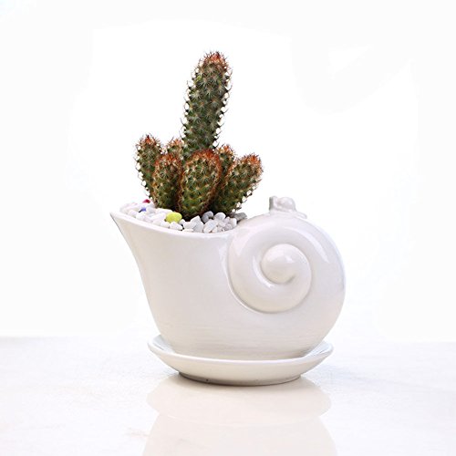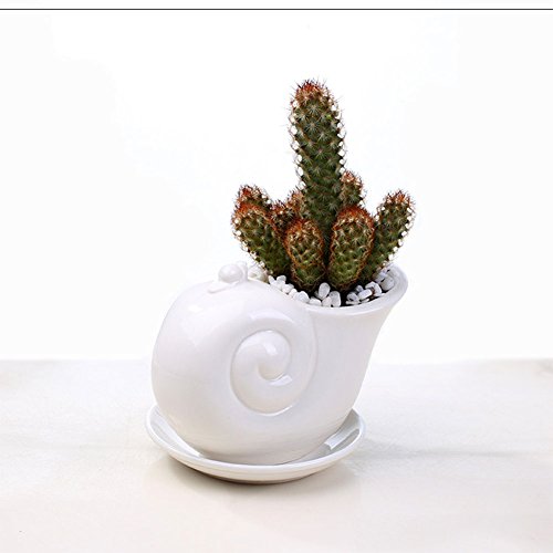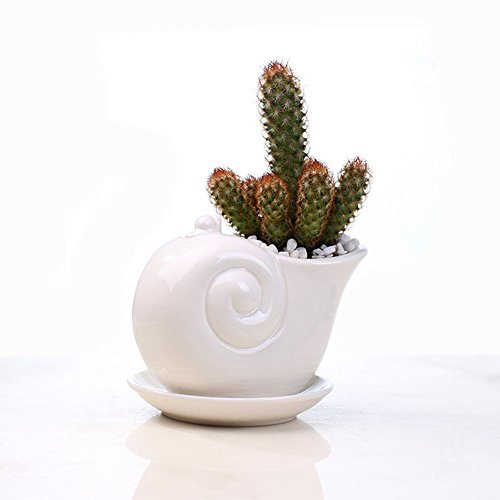 RaiFu 植木鉢 ホワイト カタツムリ 鉢植え 植物 卓上 盆栽 ホーム オフィス バルコニー 装飾 デコレーション インテリア トレイ付き