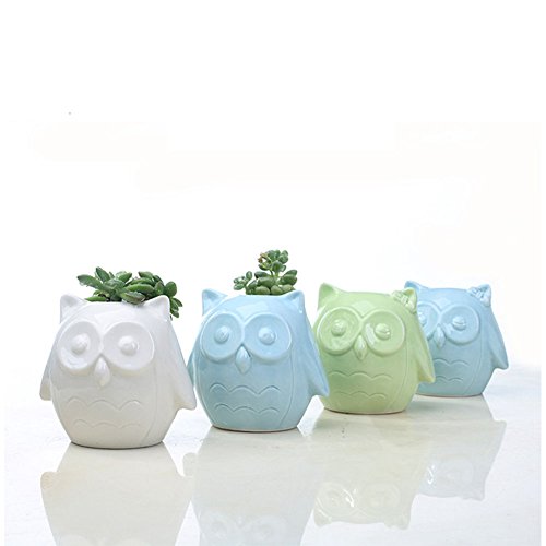 RaiFu 植木鉢 植木ポット フクロウ かわいい 卓上 ミニスカイプ 装飾 園芸 インテリア デコレーション ホワイト ボーイ