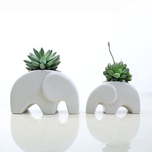 RaiFu 植木鉢 かわいい エレファント 陶器 セラミック 植物ポット 植物 卓上 ホーム オフィス バルコニー 装飾 デコレーション インテリア 1