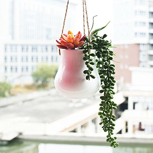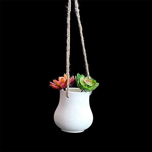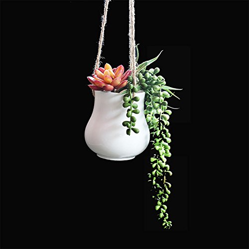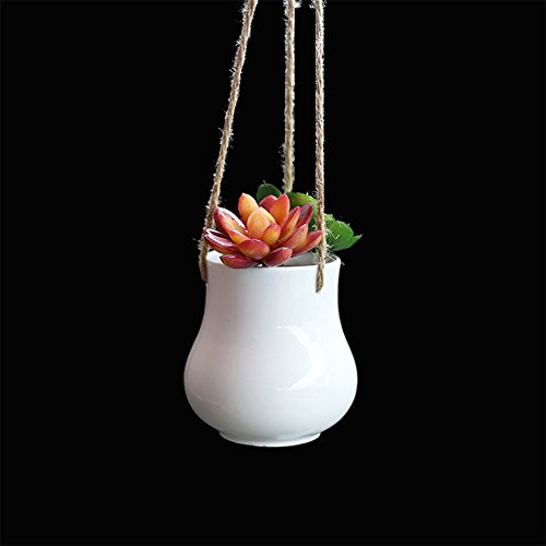 RaiFu 植木鉢 吊り下げ おしゃれ ホワイト 陶器 植物 ホーム オフィス バルコニー 装飾 デコレーション