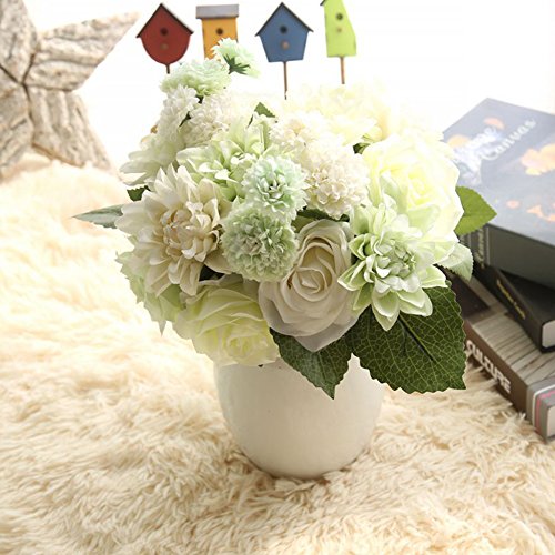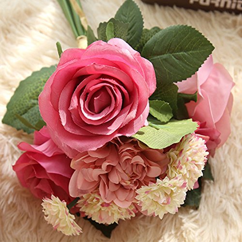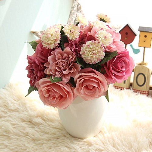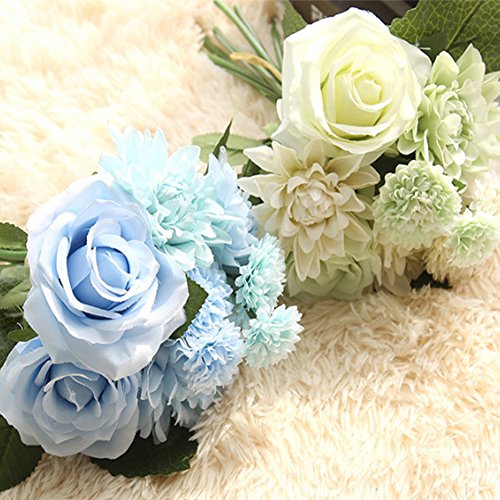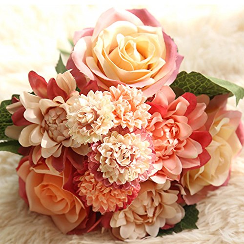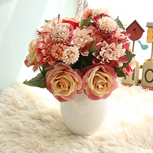 RaiFu バラ花束 人工花 模擬ダリア 菊 ホーム ウェディング 装飾 美しい エレガントな赤
