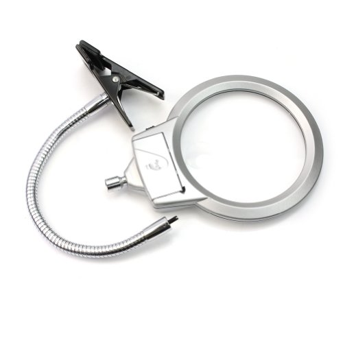 2LEDフレキシブルスタンドルーペ 拡大鏡ランプ 2LED クリップ式 調整可能 クリップ対応