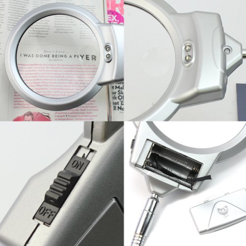 - 2 LED照明ランプ付きポータブルデスクトップ拡大鏡です。