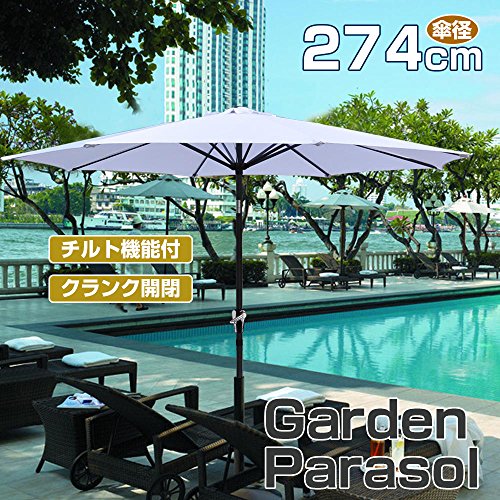 ReaseJoy ガーデンパラソル 270cm 傾く 開閉ハンドル付き ガーデン パラソル チルト機能 ガーデンファニチャー 庭 テラス アウトドア ビーチ キャンプ お店 軒先 カフェ 日傘 日よけ ホワイト