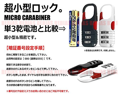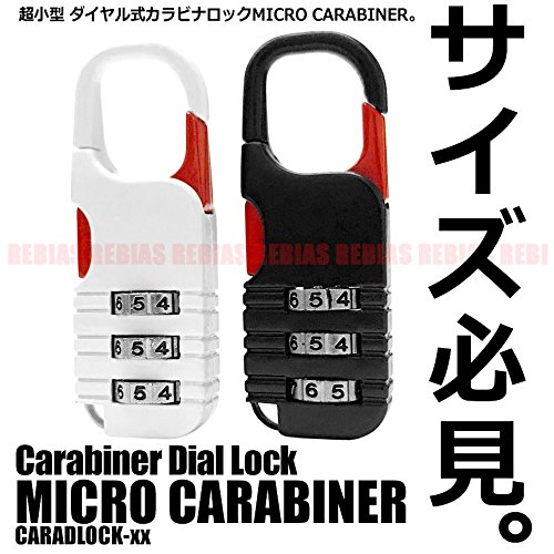 Rebias 超小型 ミニ カラビナ ロック 暗証番号 3桁 単3電池並みのサイズ ダイヤル式 カラビナダイヤルロック NS-CARADLOCK-WH