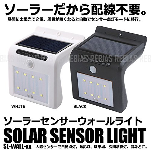 Rebias ソーラー センサー ウォール ライト 8LED 人感 防犯 明るい 玄関 壁掛け式 防犯 安全 NS-SL-WALL-WH