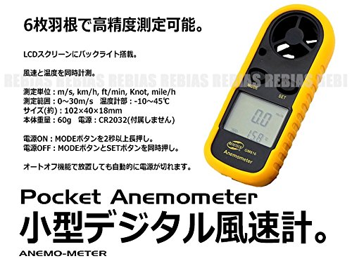 Rebias デジタル 風速計 温度計 6枚羽根 高精度測定 防水 バックライト搭載 ポケットアネモメーター NS-ANEMO-METER