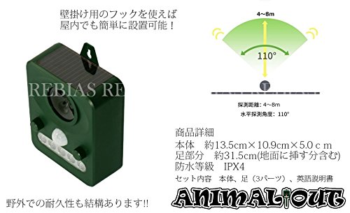 Rebias 害獣駆除 ソーラー 超音波 アニマル アウト ネコ カラス ネズミ もぐら 壁掛け 太陽光パネル 小動物 ANIMAL OUT NS-VERMIN-SQ