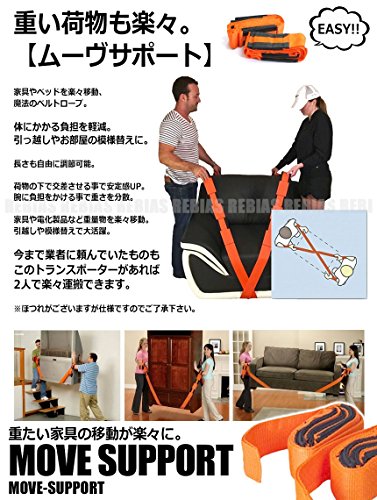 重い荷物も楽々。 【ムーヴサポート】 家具やベッドを楽々移動、 魔法のベルトロープ。 体にかかる負担を軽減。 引っ越しやお部屋の模様替えに。 長さも自由に調節可能。 荷物の下で交差させる事で安定感UP。 腕に負担をかける事で重さを分散。 家具や電化製品など重量物を楽々移動。 引越しや模様替えで大活躍。 今まで業者に頼んでいたものも このトランスポーターがあれば 2人で楽々運搬できます。 ※ほつれがございますが仕様ですのでご了承下さい。 ※商品の使用中に生じた如何なる損害も弊社ではその一切の責任を負いかねます。 ※マニュアル/説明書は付属しません。取付/使用方法のサポートはございません。 ※輸入商品のため小傷や汚れ等ある場合がございます。 ※ご閲覧の液晶環境により色味が異なって見える場合がございます。 ※仕様は改善の為に予告なく変更する場合があります。 (メール便での発送はポスト投函になります、 代金引換、日付指定はできませんのでご了承下さいませ)